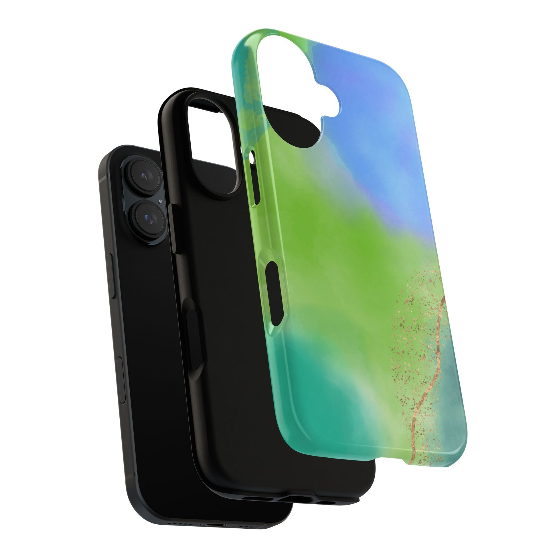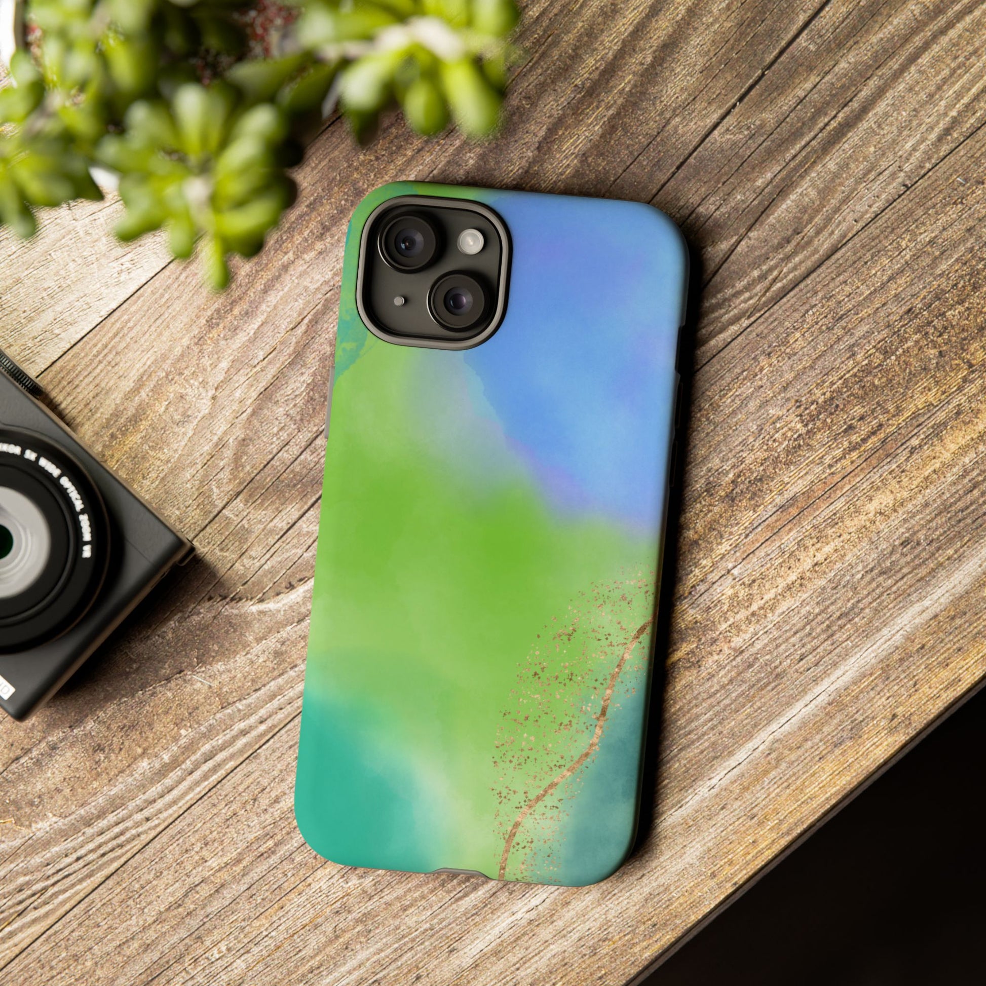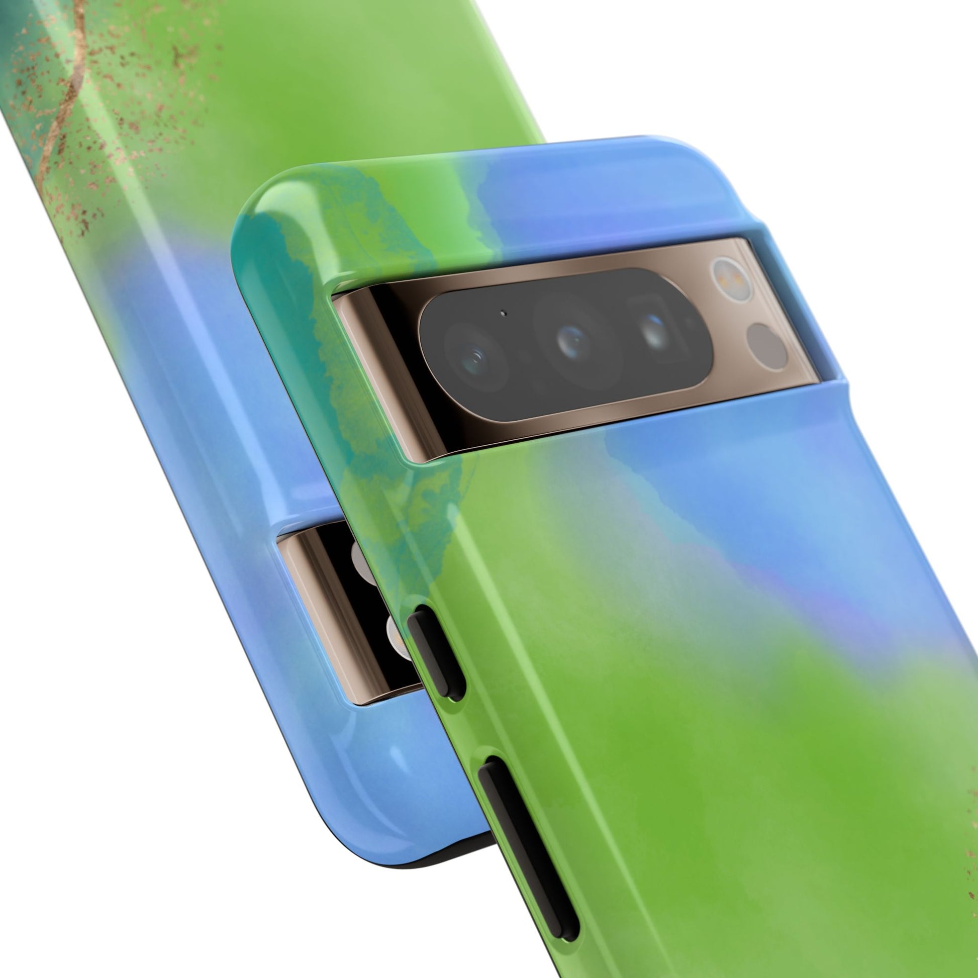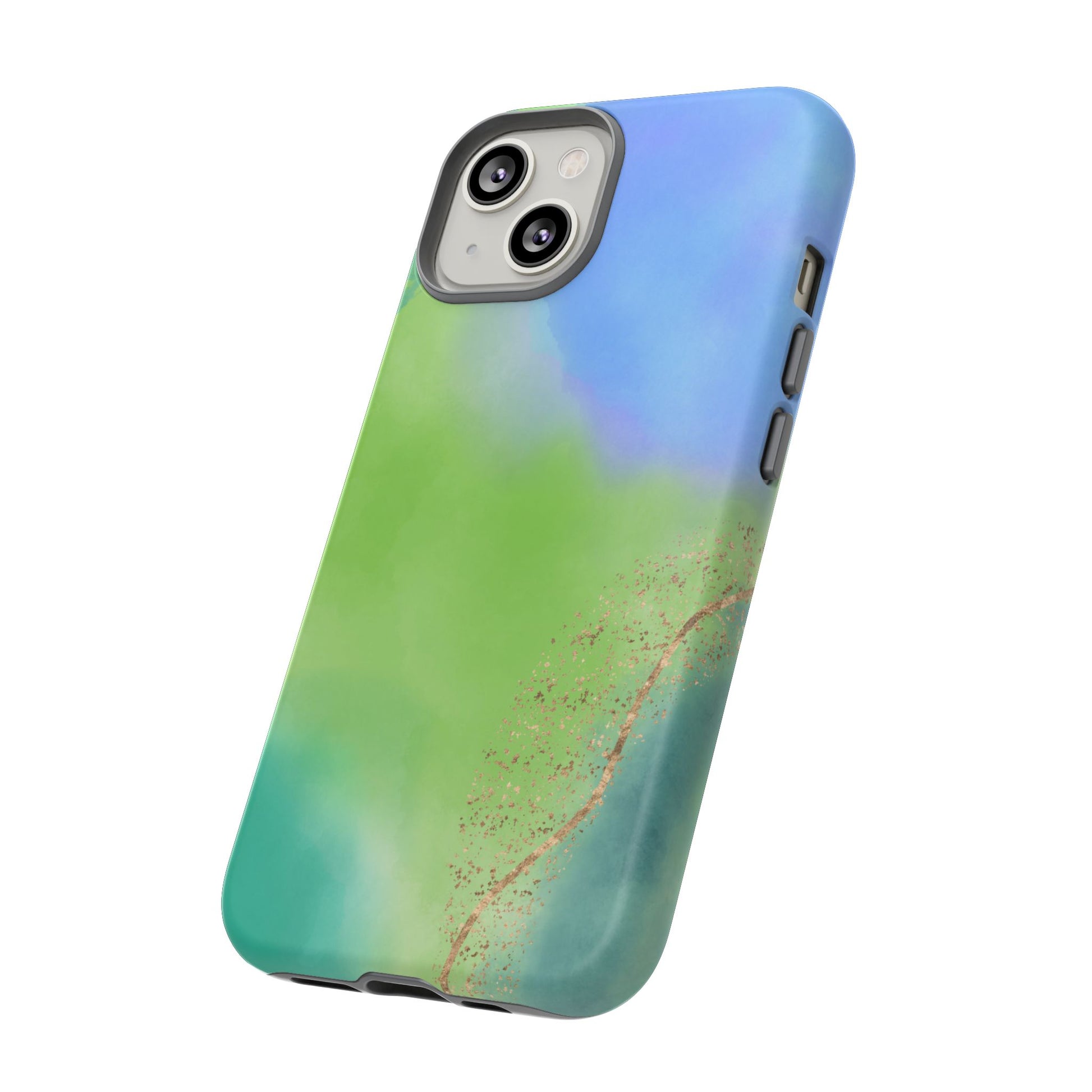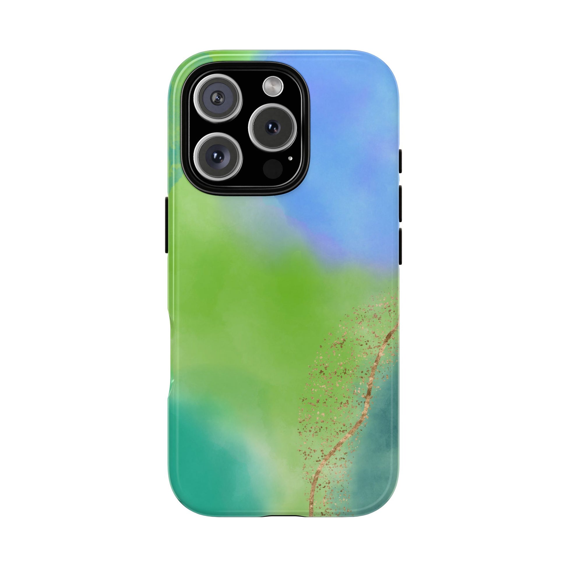 Artistic Tough Phone Case – Vibrant Green and Blue Abstract Design