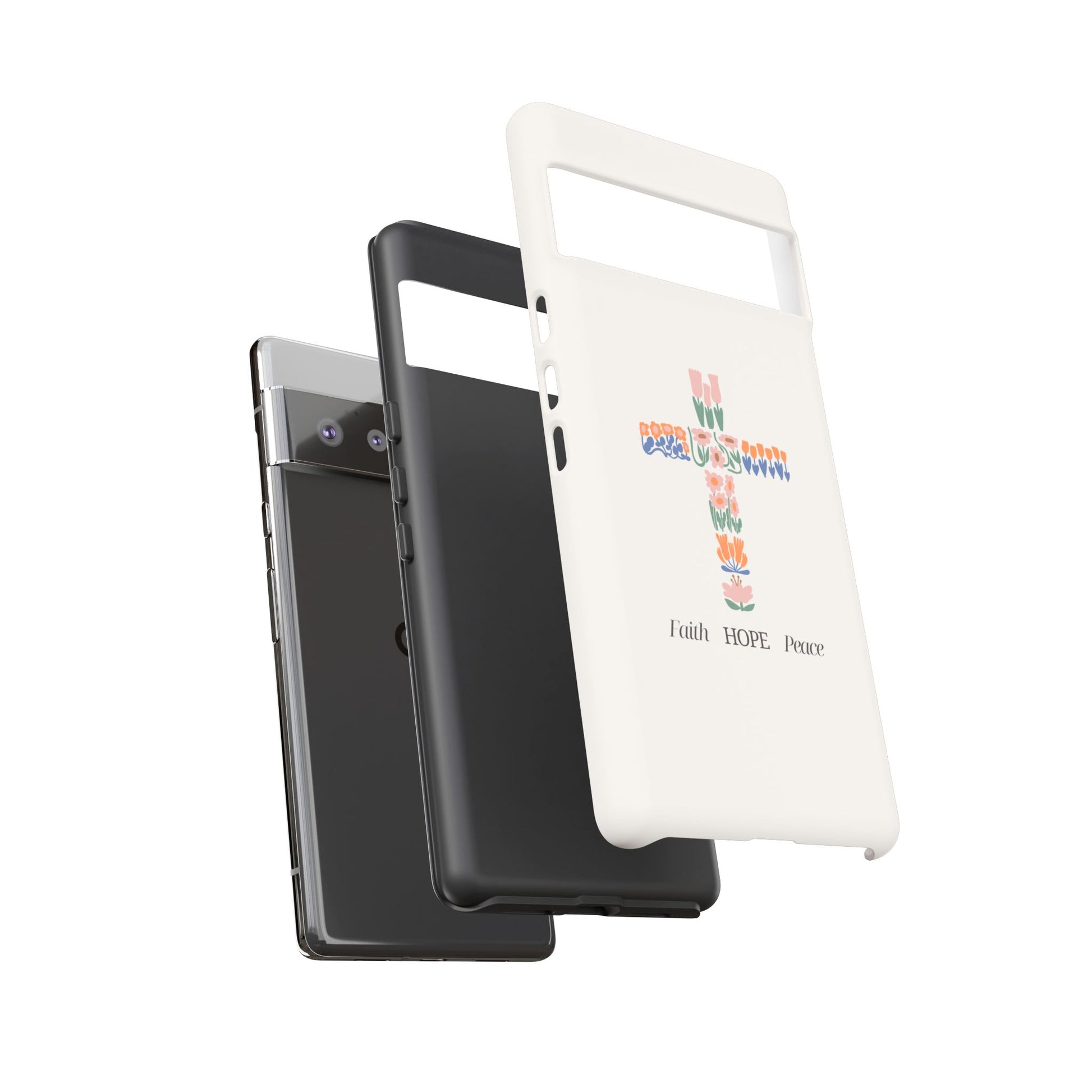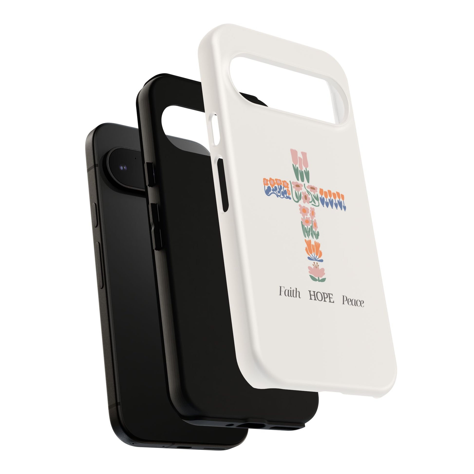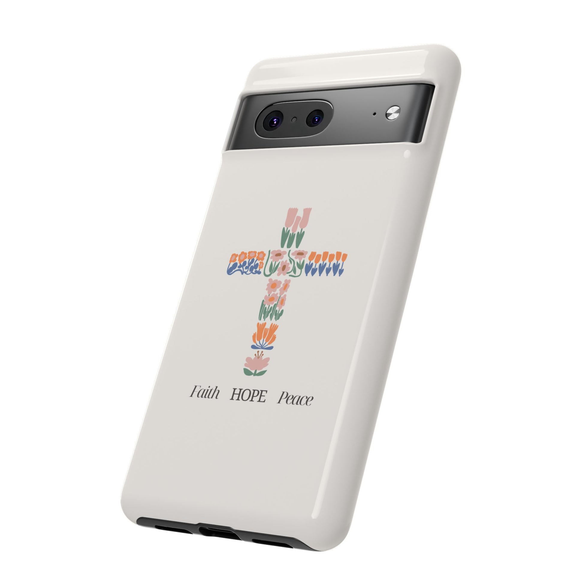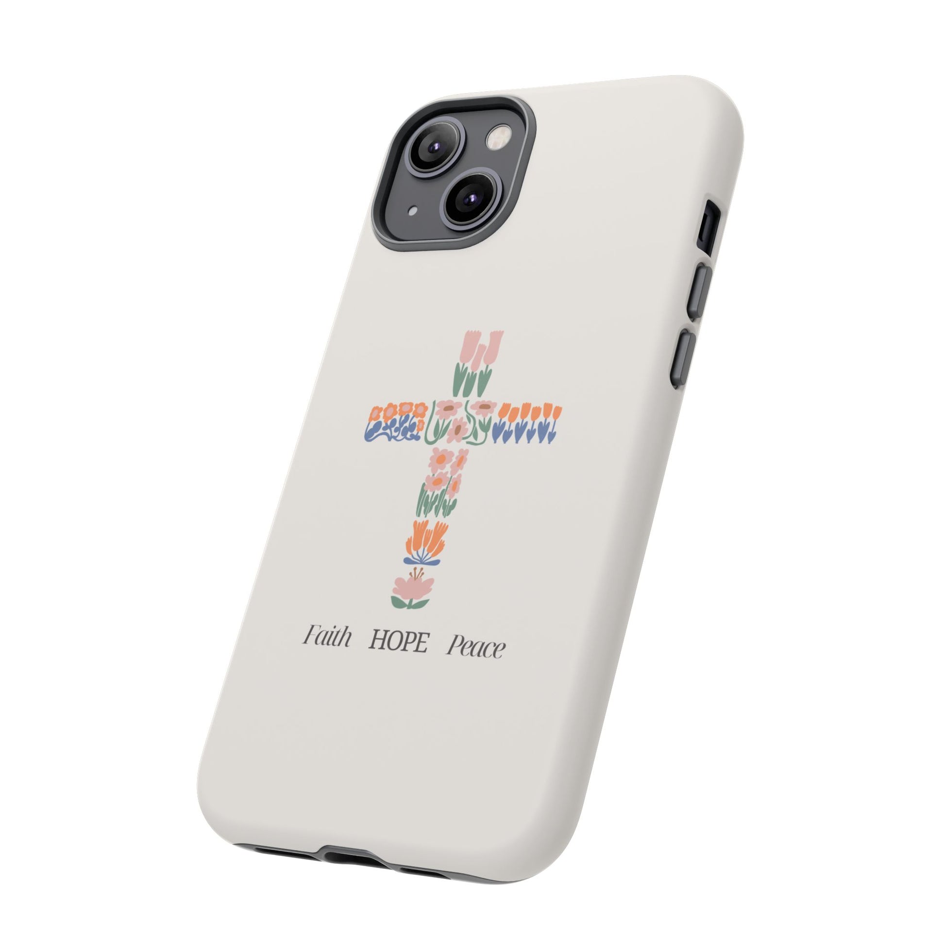 Introducing a stunning protective phone case that radiates faith, hope, and peace. This case is perfect for those who cherish their devices and seek a blend of style and protection. With a beautiful design featuring floral patterns shaped into a cross, it brings a sense of serenity and optimism to your everyday life. Ideal for adults wanting to showcase their beliefs while ensuring their phone remains safe from drops and impacts. This versatile phone case is perfect for celebrations such as Easter, Christmas, and other religious observances, making it a thoughtful gift for friends and family who value both aesthetics and functionality. Elevate your phone's look while expressing your values with this delightful accessory!