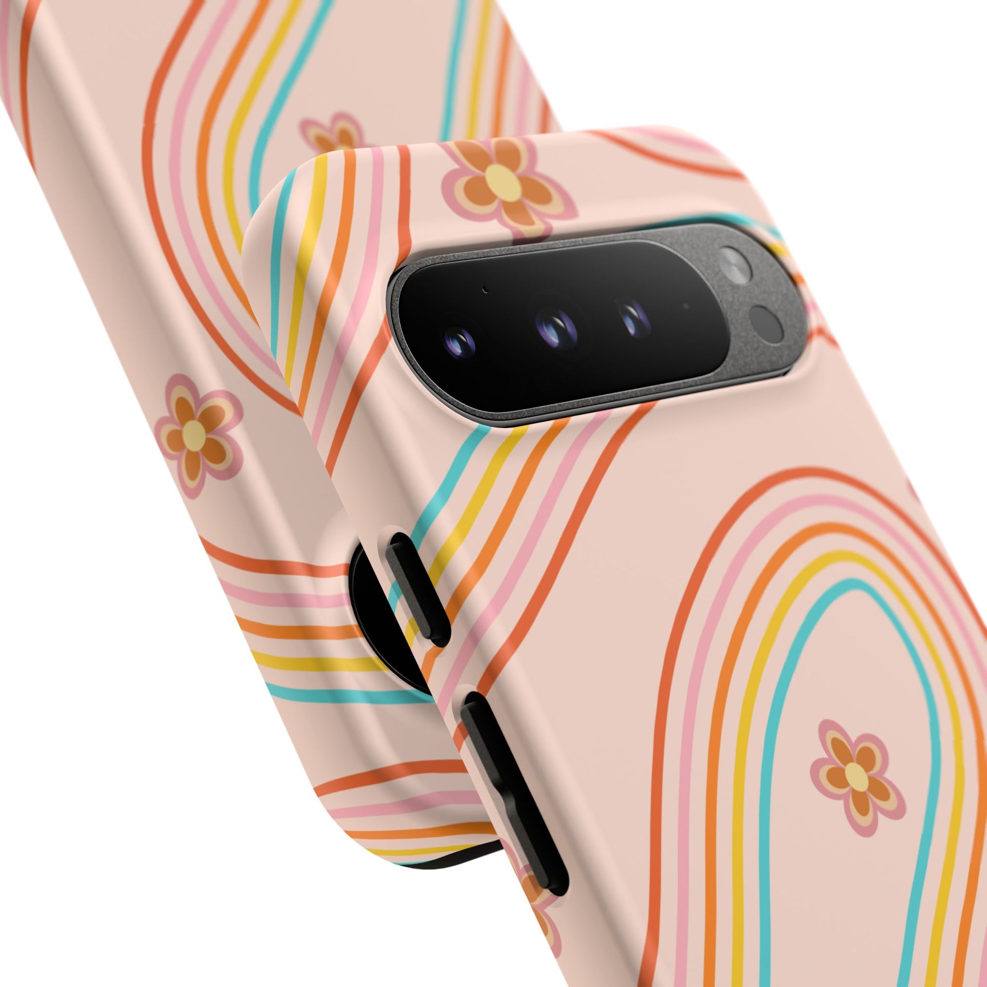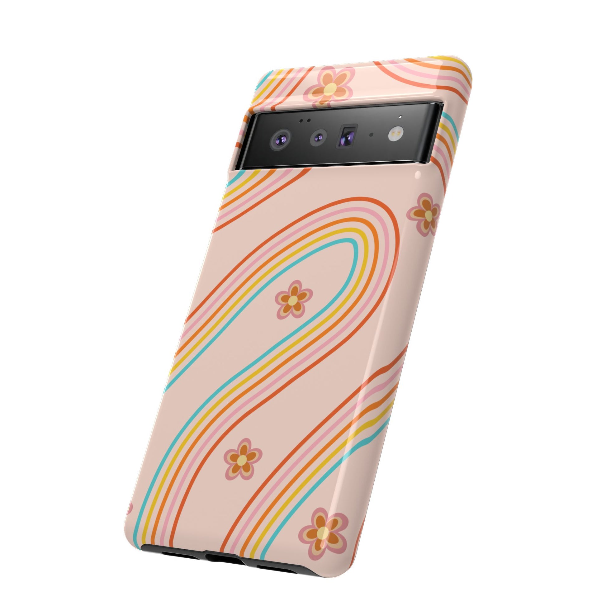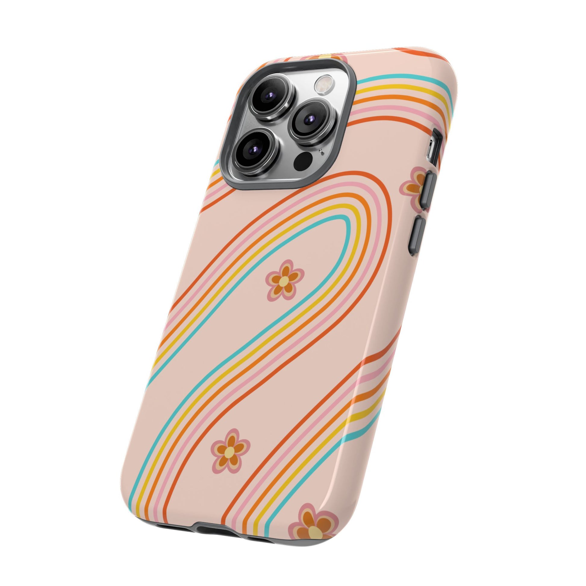 Retro Rainbow Phone Case - Tough & Stylish Floral Design