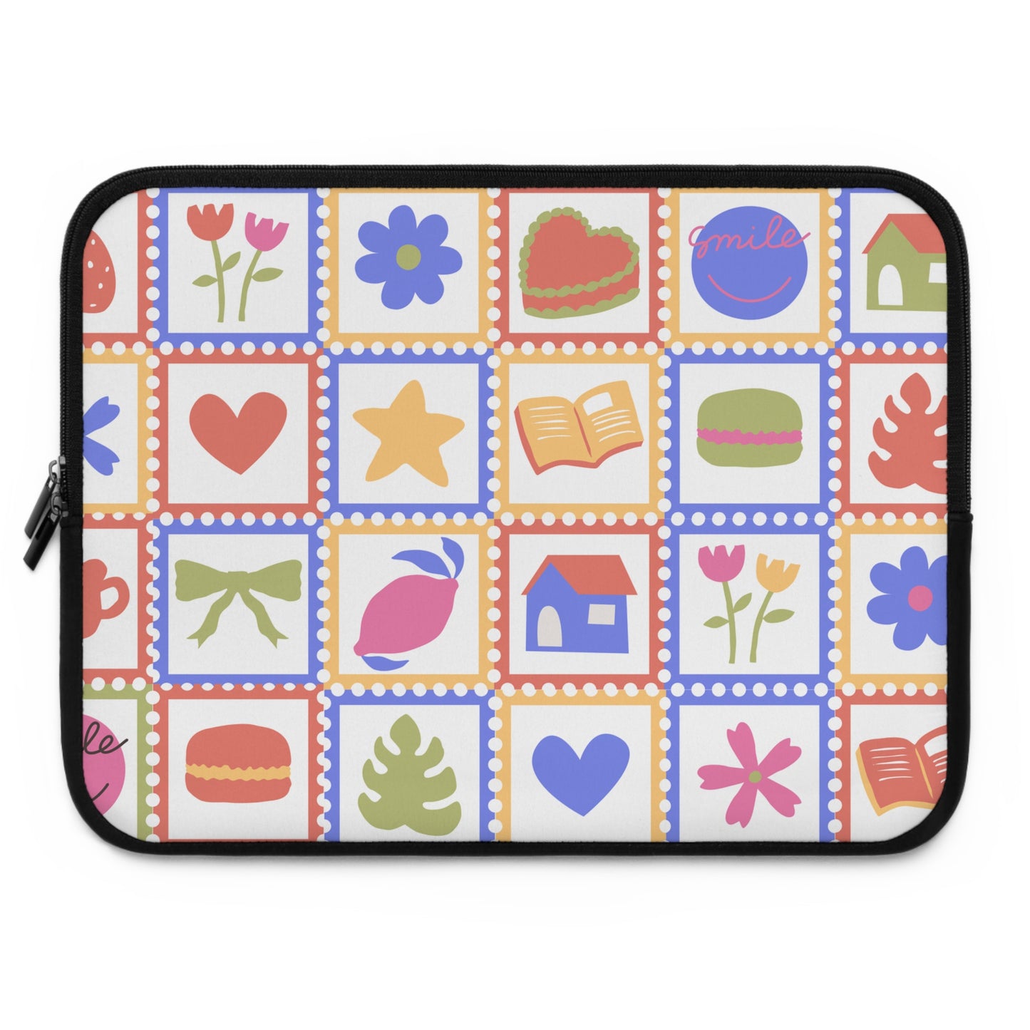 Whimsical Floral Laptop Sleeve - Colorful and Fun Design for Students and Professionals